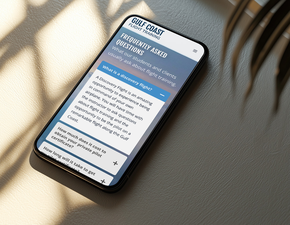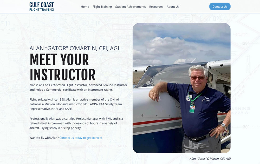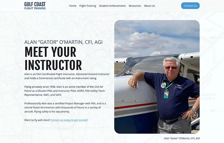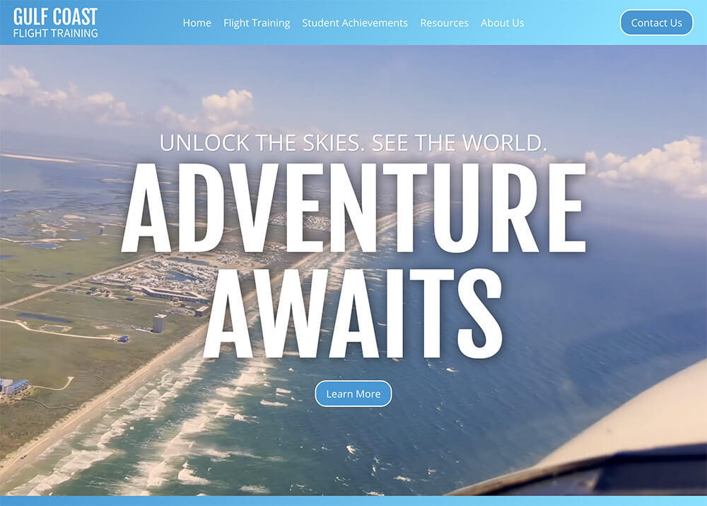 Gulf Coast Flight Training is an established flight school based in Aransas Pass Texas, proudly serving Corpus Christi, Portland, Padre Island and Rockport. Gulf Coast provides personalized flight training for lifestyle pilots, and they were keen to refresh their website.